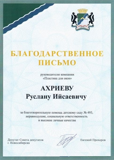 Особенно мы гордимся сотрудничеством с депутатом Совета депутатов г. Новосибирска и помощником депутата Государственной думы Дмитрия Савельева — Прохоровым Евгением Вячеславовичем. Вместе мы успешно завершили множество проектов и продолжаем эту важную миссию.